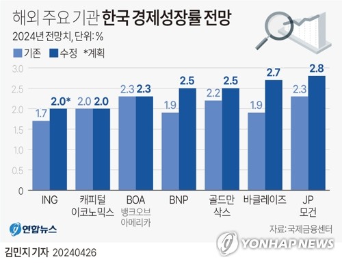 [그래픽] 해외 주요 기관 한국 경제성장률 전망