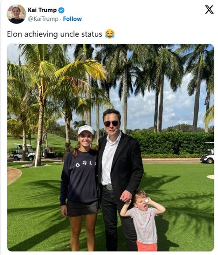 이 같은 머스크에 대해 트럼프 당선인의 손녀 카이 트럼프는 "삼촌이 된 일론"이라는 글과 사진을 자신의 엑스(X) 계정에 올렸을 정도다.