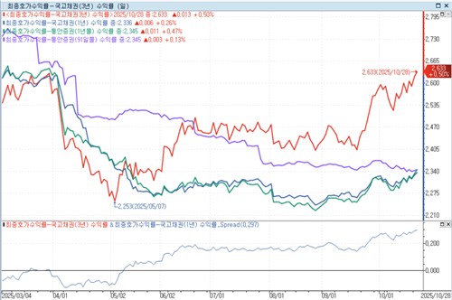 이에 1년 미만 구간 전반에서 금리가 왜곡되는 현상이 드러나는 모습이다.
